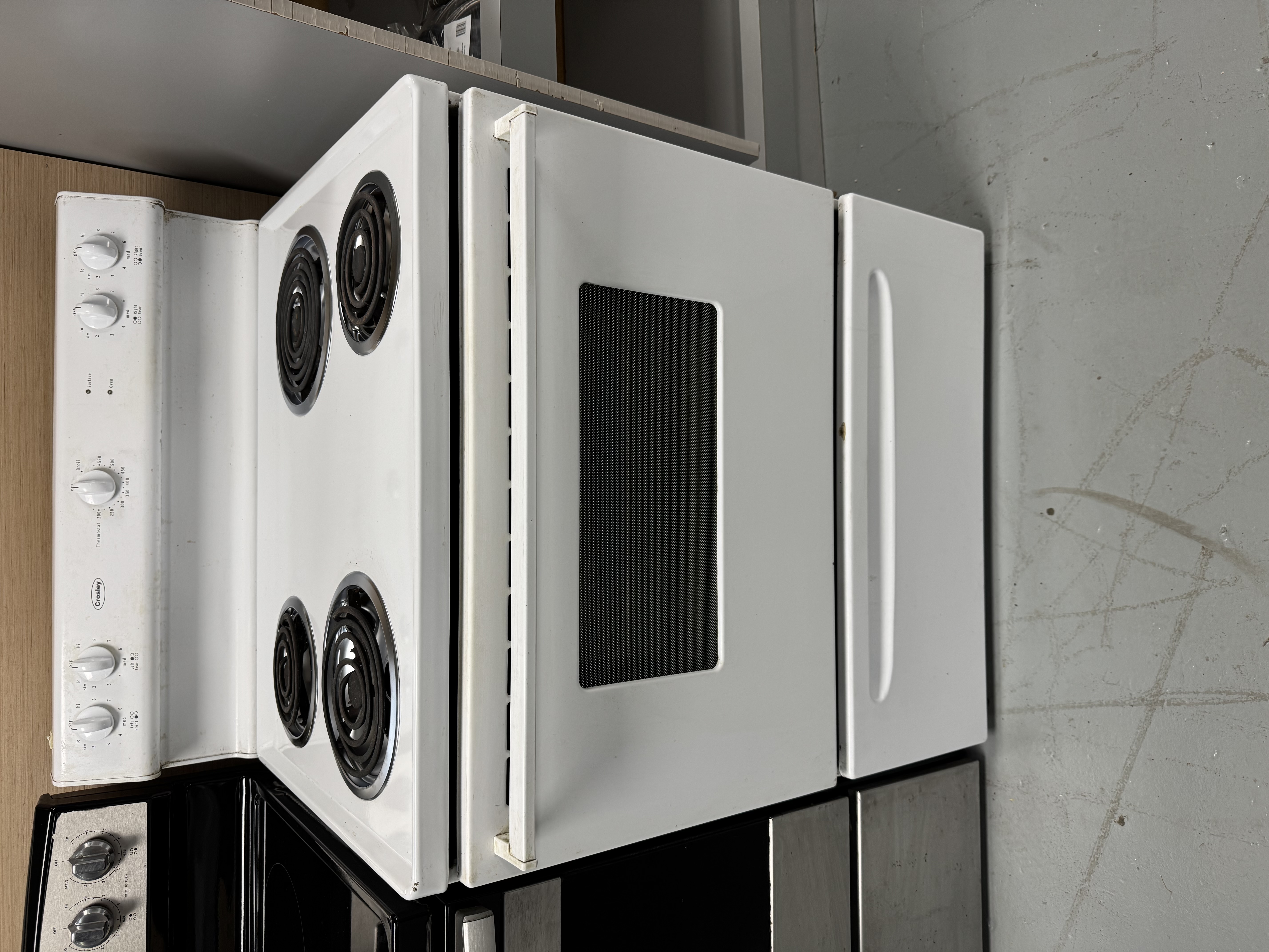 - Freestanding Electric Range Cooktop: Four coil burners ( 2 x 6" and 2 x 8") Oven Capacity: 5.0 cu. ft. (standard for 30" models of this type) Control Type: Knobs for range and oven settings